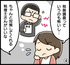 この書面添付とは、「税務のプロである税理士が書類をしっかり確認して申告書を作成しました」という証拠や保証となります。税務署の担当調査官が知りたいと思われる確認事項を明記しているため、税務調査のリスクを大幅に下げられることが期待できます。