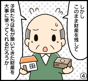 主人はとても堅実な人で、夫婦二人でコツコツと財産を築いてきました。 だから2人で使いたかったけど、主人は早く逝ってしまって、多分使えきれないので、この遺言書を作成しました。